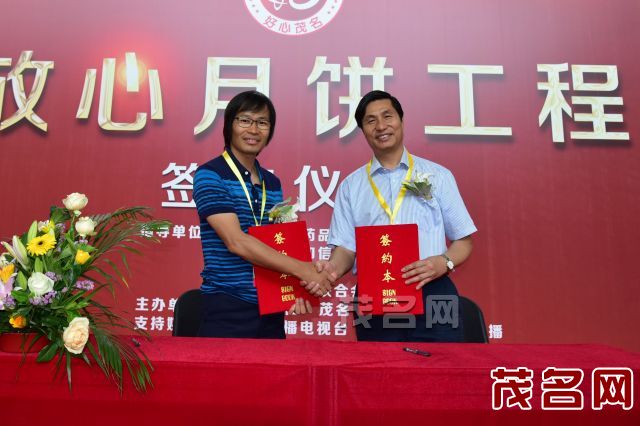 为切实贯彻执行《茂名市食品药品监督管理局放心月饼工程实施方案》的相关规定,打造实至名归的“中国月饼名都”,保证月饼质量安全,让人民群众吃得放心。5月23日上午,由茂名市食品药品监督管理局与茂名市食品行业协会共同举办的“茂名市放心月饼工程”签约仪式在广州琶洲中国第二十二届烘焙展中隆重举行。茂名市食品药品监督管理局局长黄权、茂名市人民政府驻广州办事处主任吴云,茂名日报社党委书记、社长车永强,南方报业集团LED网总编辑杨叶林,茂名日报社副社长李健,茂名日报社传媒中心总经理吴捷,茂名市人民政府驻广州办事处办公室主任麦哲伦,茂名市人民政府驻广州办事处科长韦启寿,广州市茂名商会监事会主席王喜等领导及我市40多家月饼生产企业代表约300人参加了本次签约仪式。